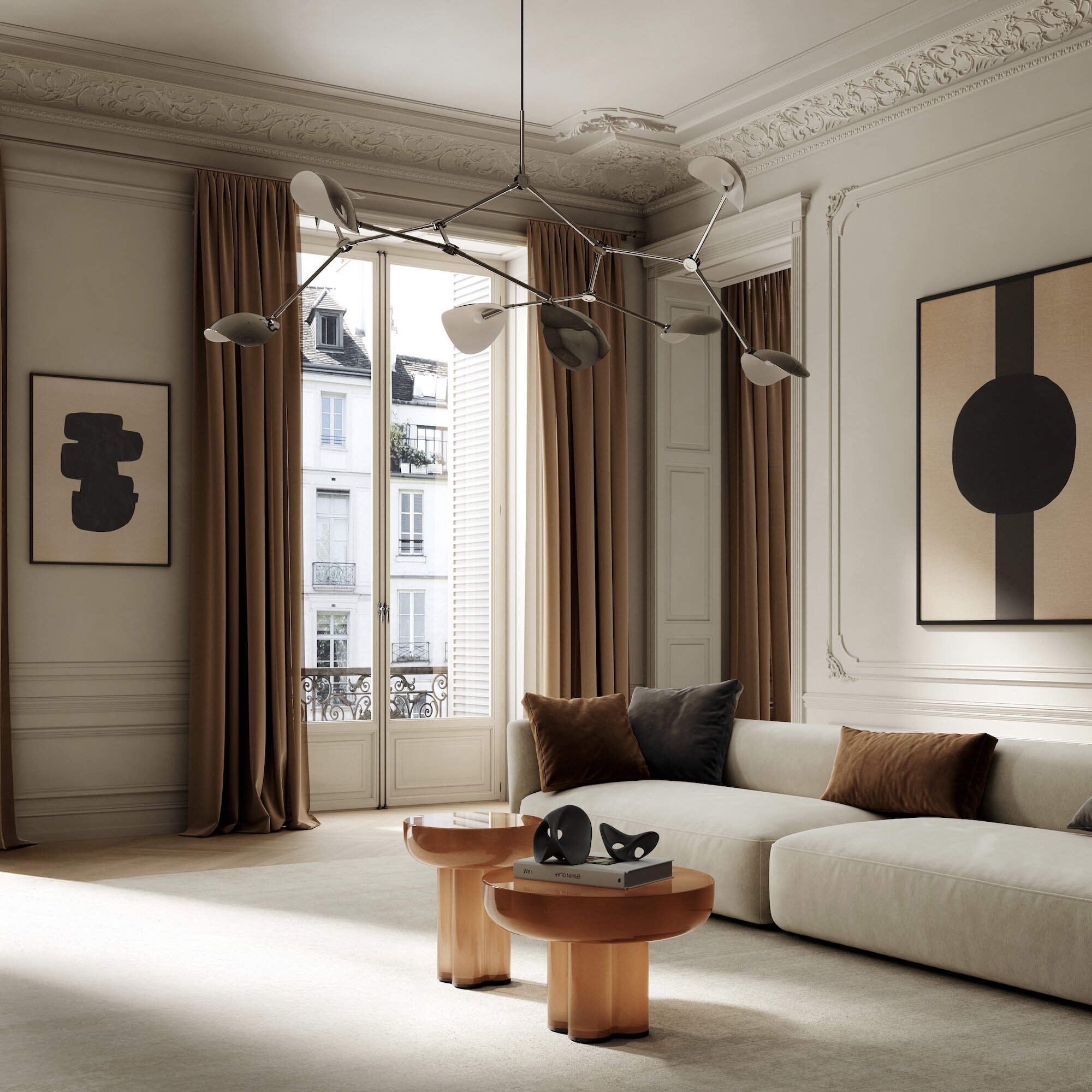 Den kromade ytan reflekterar ljuset på ett mjukt och levande sätt och skapar en exklusiv känsla, oavsett om den placeras över matbordet, i vardagsrummet eller i en rymlig hall. En perfekt kombination av konstnärlig design och funktionell belysning.
