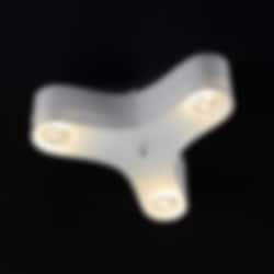 Diffus, designad av Kajsa Pettersson, är en takpendel i bockad aluminium som hålls samman av en läderknut och skapar ett fjäderlätt intryck. Diffus finns i flera färger och två storlekar.