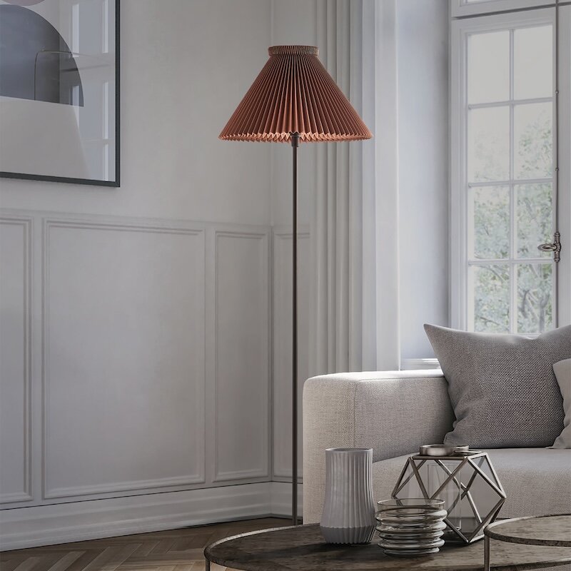 Med Model 334 förenas ikonisk design med minimalism och tidlös elegans. Den enkla formen bevarar vårt klassiska DNA, samtidigt som möjligheten att välja en färgad skärm tillför ett fräscht element. Det ger en överraskande och lekfull detalj till det välkända uttrycket. Golvlampan använder lampmodell 1 med en diameter på 30 cm. En vacker lampa som tillför värme och elegans till både klassiska och moderna hem.