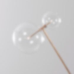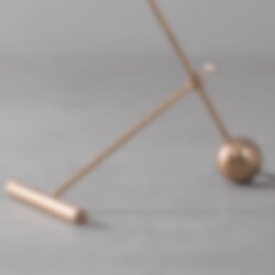 Lampan har en minimalistisk modern design som passar utmärkt i hemest alla rum. Den är gjord i solid mässing och har munblåsta glasglober som sitter längst ut på varsin sida om armen.