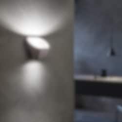Vägglampan Aplomb är skapad av samma specialmixade betong som de övriga lamporna i Aplomb-serien. Designen är minimalistisk även om betongen ger en mer robust känsla. Själva betongskärmen blockar allt ljus och släpper ut en stor ljuskägla upp mot taket och en mindre ner längs väggen. Aplomb kräver fast installation och ljuskälla ingår.