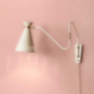 Cone har en klassisk 50-tals design med mässingsdetaljer och justerbar arm . Dom fina ljusspåren i skärmen ger ett fint allmänljus och värme i rummet. Perfekt att placera vid sängen, skrivbordet eller soffan då skärmen går att rikta för ett bra läsljus.