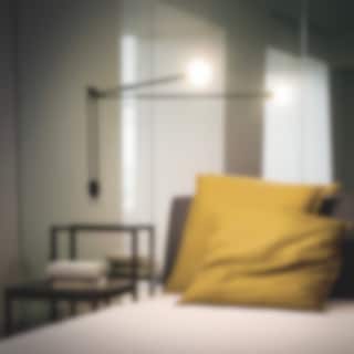 En vägglampa i minimalistisk design som kan lysa upp ett rum. Fästet på väggen kan rotera 180° så man lätt kan justera lampan dit man vill ha den. Perfekt för vardagsrummet, sovrummet i köket eller där man har högt till tak.