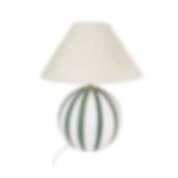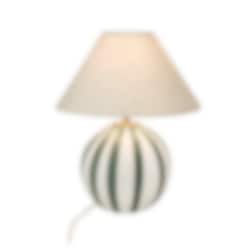 Elegant bordslampa med en vacker rund fot i en varm grön nyans med en vit bas och beige lampskärm. Denna tidlösa design är perfekt för att ge ditt rum en klassisk och sofistikerad touch.