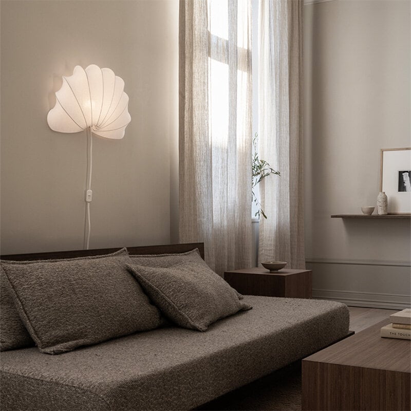 Anna Vägglampa L i vit bomullsjersey skapar en varm och inbjudande atmosfär och blir en elegant detalj i vardagsrum, hall eller sovrum. Den har en vit textilsladd med brytare för enkel användning och rekommenderas med en E14 LED-ljuskälla i opalglas för jämn och behaglig ljusspridning.