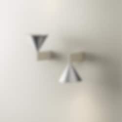 Design: Broberg & Ridderstråle. Apollo 14 är en mångsidig vägglampa som kan riktas uppåt eller nedåt. Samtidigt som den behåller den signaturkoniska formen som är synonym med Apollo-familjen, introducerar den också en elegant geometrisk profil som fungerar som väggfäste.