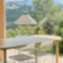 Ava-kollektionen, formgiven av Ana Kraš för HAY, förenar en arketypisk lampsilhuett med ett djärvt grafiskt uttryck och ger en modern tolkning av den klassiska lampan.