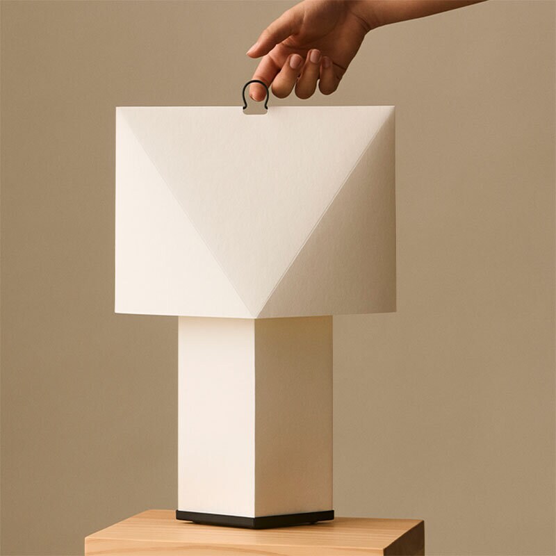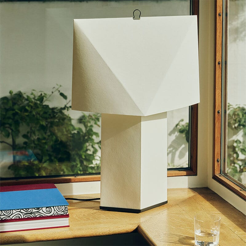 I sin första lampa för HAY har Aplat tagits fram som en lätt och skulptural bordslampa, tillverkad av vikt papper. Formen är resultatet av lekfulla experiment där några få, precisa veck förvandlar ett plant material till en tredimensionell volym. Uttrycket för tankarna till ett plagg som formas av kroppen – enkelt i sin konstruktion men med stark visuell närvaro. Aplat bordslampa är en poetisk och samtida ljusobjekt som kombinerar lågmäld elegans med ett tydligt, grafiskt uttryck. Finns i två olika storlekar.