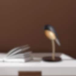 Bird fångar din uppmärksamhet med sin unika böjda form och organiska design. Den något lutande positionen påminner oss om en fågel som tar hand om små fågelungar och får dig att känna dig skyddad medan den omger ett mjukt sken.
