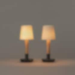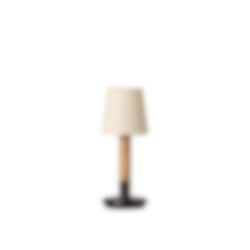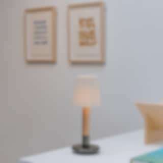 Lampans bas är vackert tillverkad i naturligt trä, som harmoniserar med en noggrant utvald textilskärm för att ge ett varmt och behagligt ljus. Med sin uppladdningsbara funktion är Básica Mínima Batería idealisk att ta med sig stämningsfull belysning till vilket rum eller hörn som helst.