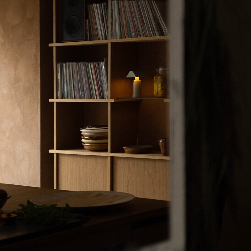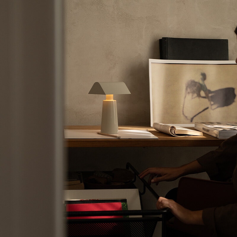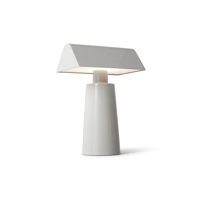 Caret omtolkar den linjära silhuetten hos klassiska gröna bankirlampor, välkända från historiska bibliotek, i ett modernt och portabelt utförande. Lampan är helt tillverkad i lackerat stål och har en rundad bas samt en lång, pyramidformad ovandel som sprider ett mjukt och diffust ljus. Resultatet är en behaglig atmosfär som passar lika bra på hyllor och bänkar som på nattduksbordet.