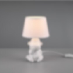 Bordslampa Luci övertygar med sin stilrena design. Den rundade basen och den cylindriska tygskärmen harmoniserar perfekt med varandra och får din byrå, fönsterbräda eller nattduksbord att lysa i ett vackert ljus.