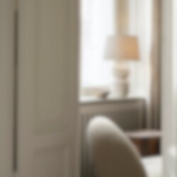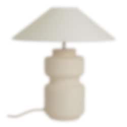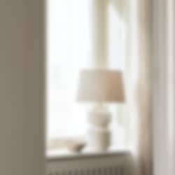 Evy är en naturvit bordslampa i keramik. Den grafiska formen och matta yta tillför en känsla av elegans och siluetten känns nästan som en skulptur att vila sitt öga på. Välj lampan i elfenbensvit tillsammans med en cylinderskärm för en lyxig loungekänsla eller varför inte en klassisk, tidlös i linne. Du sätter stilen. Evy har en matchande textilsladd för en extra lyxig känsla.