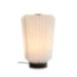 Filippa är en elegant bordslampa i handgjort papper som får en unik karaktär när den är tänd. Papprets naturliga struktur och subtila nyansskiftningar framhävs vackert, vilket skapar ett mjukt och behagligt ljus. Varje exemplar har små variationer som ger lampan ett personligt och genuint uttryck.