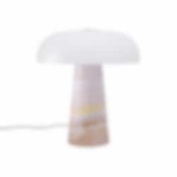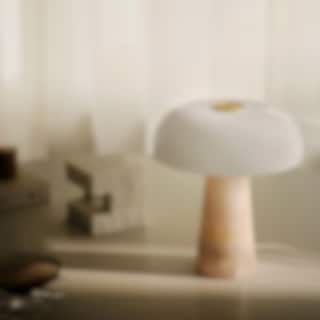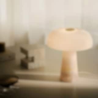 Namnet Glossy syftar på den blanka ytan av opalvitt glas, som sprider ett mjukt och behagligt ljus. Varje lampa är unik tack vare marmorns naturliga variationer i linjer, färger och mönster - en vacker påminnelse om naturens eget hantverk.