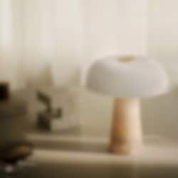 Design: Maria Berntsen. Glossy är sinnebilden av smakfull och sofistikerad design. Designern Maria Berntsen har skapat en elegant miniversion av den klassiska bordslampan, där nordisk minimalism möter exklusiva material. Kombinationen av marmor, mässing och opalvitt glas ger lampan en tidlös och stilfull karaktär.