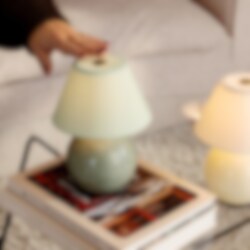 Lampan är utrustad med samtida funktioner såsom en brytare på skärmens topp som ger möjlighet till dimning i tre steg, vilket gör den flexibel för olika ljusbehov. Den laddas via en medföljande magnetisk laddkabel (väggadapter köps separat) och har en batteritid på 6-8 timmar vid full ljusstyrka, vilket kan förlängas vid lägre ljusstyrka. Laddningstiden är 6-7 timmar, och lampan är designad för lång hållbarhet med en utbytbar ljuskälla som kan köpas separat.