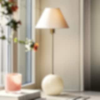 Den söta bordslampan Iris är som en godisbit som lyser upp rummet med sin glada färg och uttryck. Designern Erika Norén hittade inspirationen till lampan i den gamla traditionella bordslampan, "en helt vanlig lampa", med en rund lampfot och en traditionell lampskärm. Genom att lägga till några moderna detaljer som lampfoten i färgat glas, med detaljer som oregelbundna blåsta bubblor och en matchande lampskärm i bomull med täckt topp som går ton i ton med lampfoten, känns lampan som en naturlig inredningsdetalj i många samtida interiörer. Lampan passar perfekt i ett fönster eller på ett sidobord. Observera att luftbubblorna i glaset varierar i storlek och skapar ett unikt mönster för varje lampa, därför kan lampan du får avvika något från bilderna.