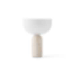 Kizu bordslampa balanserar djärva former och fascinerar ögat med sin skulpturala sammansättning, och denna bärbara version av lampan är inget undantag. Material och uttryck är som vi känner dem, men denna sladdlösa, mindre storlek är lätt att flytta runt där ljus behövs. Med marmor som bärelement får lampan naturlig stabilitet och den polerade stenen känns behaglig vid beröring. Eftersom ljuset sprids från hela den övre delen av lampan ger den lilla bordslampan ett högt ljusutbyte. En vänd försänkt metallcirkel på lampans ovansida tillför en förfinad detalj till designen, och genom att knacka försiktigt på cirkeln kan ljuset dämpas till tre olika nivåer. Kizu Bordslampa Portable har en batteritid på 10 timmar vid en ljusinställning på 100 % och laddas med en USB-C-kabel.