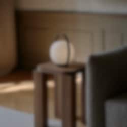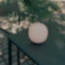 Den bärbara bordslampan Lantern har en batteridriven ljuskälla med trestegsdimmer, magnetisk laddningskabel för enkel och diskret laddning och ett metallhandtag som gör att du kan bära runt lampan och hänga den på en krok eller gren. Den tidlösa poesin i det vita opalglaset som möter det mattsvarta stålet är lika behagligt som det mjuka ljuset som sprider sig från skärmen och omedelbart lyfter stämningen. Använd den som en bordslampa i hemmet, för att lysa upp en mörk trappa och ta den ut som en lysande sfärisk detalj för de magiska sommarnätterna.