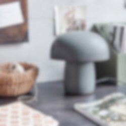 Dekorativ belysning för alla rum i ditt hem. Denna bordslampa från House Doctor balanserar vackert det tidlösa tilltalandet av släta ytor med den mjuka, svampliknande formen för att ge dig en modern design. Ljuset studsar försiktigt av insidan av lampskärmen och tittar du närmare kommer du att märka dess oglaserade kant som tillför en extra detalj. Njut av den mjuka, omgivande glöden genom att placera bordslampan på ett konsolbord eller sidbord där den också sätter fokus på dess skulpturala tilltalande.