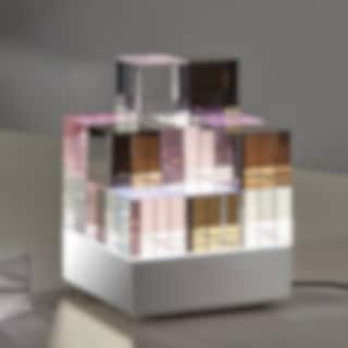 Cubelight MSCL 2 är en bordslampa som ger möjligheten att hela tiden förnya och förändra dess utseende. Lampan består av en bottenplatta och 18 lösa glaskuber som kan staplas och placeras hur som helst på basplattan som har integrerad LED-ljuskälla. MSCL 2 har 10 vita klarglaskuber, fyra rosa och fyra svarta, så beroende på hur de staplas tar både lampan och ljuset nya former och färger och effekter.