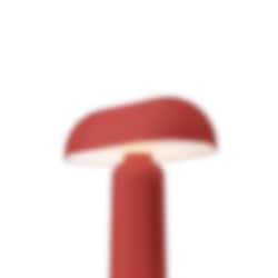 Design: Simon Legald, 2022. Med sina mjuka, organiska former och en harmonisk kombination av cylindrisk bas och välvd lampskärm skapar Porta en estetisk helhet. Den unika lampskärmen är utformad för att ge ett behagligt och stämningsfullt ljus i mindre utrymmen. När skärmen vinklas i 90 grader tar den upp mindre plats, vilket gör att lampan enkelt får plats på fönsterbrädor, små cafébord eller hyllor.