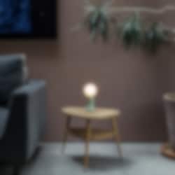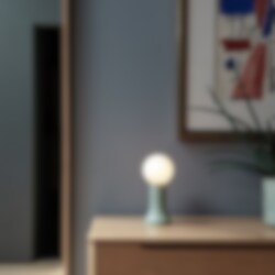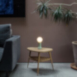 Shore är en liten charmig bordslampa tillverkad i återvunnet munblåst glas. Den påminner om en glänsande sten som har sköljts upp på stranden av havet.