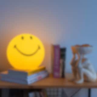 Den lyckligaste rumskamraten du kan ha! Denna 25 cm glada globen ger ett mysigt ljus och kan placeras var du vill. Han passar vid din säng, utställd i vardagsrummet eller som smileykollega på ditt kontor.