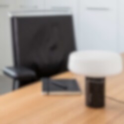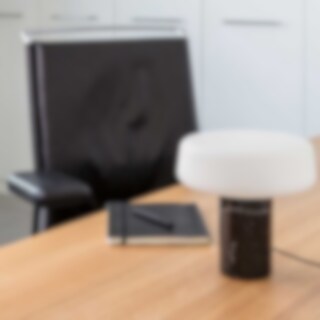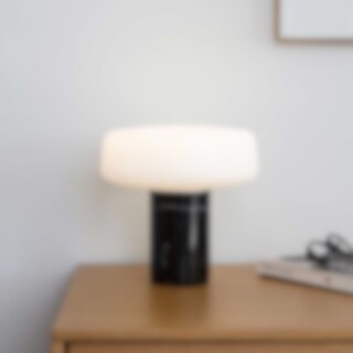 Solid Light Small bordslampan har en elegant cylindrisk bas, framställd av massiv, finpolerad Nero Marquina marmor. Glaset sörjer för att det avger ett diffust ljus och lampans design passar in i modern eller skandinavisk inredningener. Den är utrustad med en integrerad dimmer i stål, på den cylindriska bas, och skärmen är matterat handblåst opalglas. Marmor är naturmaterial därför kan varianterna variera en aning, vilket gör varje lampa unik.
