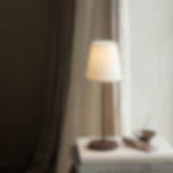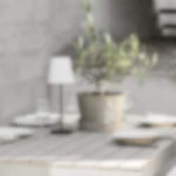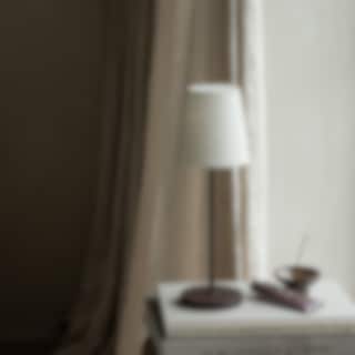 Tyra Portabel bordslampa är en stilren och flexibel bordslampa som kombinerar funktionalitet med elegant design. Den laddningsbara lampan är utformad för både inomhus- och utomhusbruk, vilket gör den till ett perfekt val för allt från fönsterbrädor och hyllor till middagsbord och uteplatser. Med en lackad metallfot och en textilskärm sprider