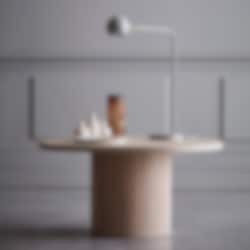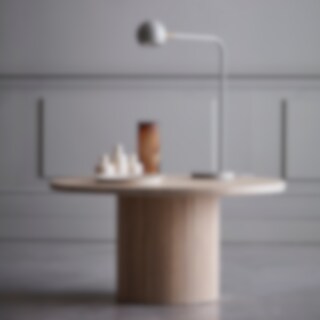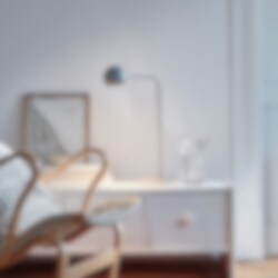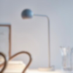 En tidlös design formgiven av Monika Mulder, hennes strävar är att hitta smidiga lösningar som fyller verkliga behov utan att tumma på estetik till föremålet. Stommen av metall har ett strikt formspråk, som lättas upp när den möter det runda lamphuvudet med mässingsdetalj.