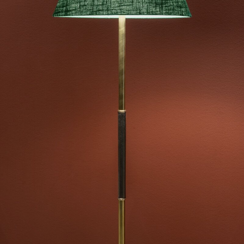 Bow liten golvlampa rå mässing/emerald green