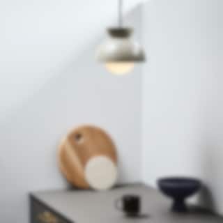 Den övre kupolen är försedd med diskreta hål för att få det mjuka ljuset att även spridas uppåt.