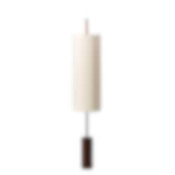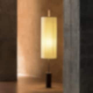 Lampans vertikala design skapar en känsla av höjd och rymd, medan dess textilskärm mjukt filtrerar ljuset för att skapa en varm och behaglig atmosfär. Den robusta men eleganta basen ger stabilitet och ett sofistikerat uttryck som passar perfekt i allt från vardagsrum till entréer och kontor.