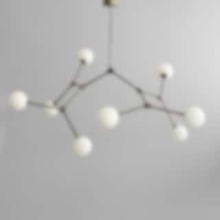 Metallarmarna håller varsamt varje glasklot och är noggrant placerade för att skapa en naturlig och harmonisk helhet. Lampan fungerar lika mycket som en funktionell ljuskälla som ett skulpturalt blickfång. Det varma ljuset som silas genom det matta glaset ger ett mjukt, diffust sken – perfekt för att skapa en välkomnande känsla i vardagsrum, matsalar eller öppna ytor.
