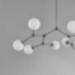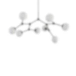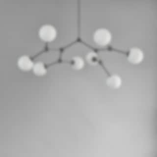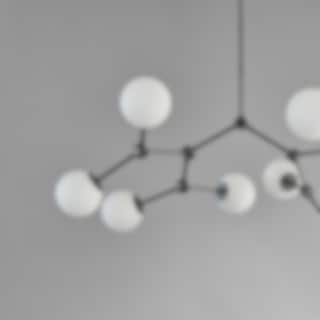 Metallarmarna håller varsamt varje glasklot och är noggrant placerade för att skapa en naturlig och harmonisk helhet. Lampan fungerar lika mycket som en funktionell ljuskälla som ett skulpturalt blickfång. Det varma ljuset som silas genom det matta glaset ger ett mjukt, diffust sken – perfekt för att skapa en välkomnande känsla i vardagsrum, matsalar eller öppna ytor.