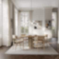 Design: Kristian Sofus Hansen & Tommy Hyldahl. Drop Chandelier Bulb är en elegant fusion av modern minimalism och klassiska Art Deco-takkrona. Med sina perfekt rundade lampskärmar i matt vitt opalglas skapar lampan ett lugnt och inbjudande ljus. Det mjukt translucenta opalglaset sprider det varma skenet jämnt och ger en behaglig, stämningsfull belysning som omsluter rummet i en harmonisk atmosfär.