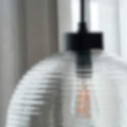 Den handgjorda, räfflade glasskärmen ger en taktil känsla till den runda taklampan, medan järnskivan avslutar designen med en industriell stil. Tack vare det klara glaset smälter lampan in i vilken inredningsstil som helst och ger din läshörna, vardagsrum eller hemmakontor ett mjukt, funktionellt ljus. En lampa som fungerar lika bra ovanför ditt middagsbord. Om din heminredning är i behov av diskret elegans, är Gaia-lampan det.
