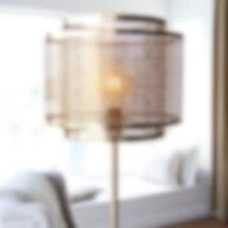 Golvlampan Hermine ger ditt hem en skön harmoni och en varm ombonad känsla. Mönsterbilderna i skärmen för tankarna till blommor. När denna fina lampa är tänd får man en varm och inbjudande känsla. Armaturen har färgen matt mässing och finns i flera olika modeller.
