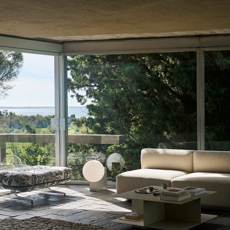 Journey golvlampa är formgiven med fokus på proportion och skala och är en förstoring av de mindre modellerna för bord och vägg. Den kombinerar en stabil bas i stål med en sfärisk glasskärm, vilket skapar en spännande kontrast mellan tyngd och lätthet. Den rena och grafiska formen ger lampan ett tidlöst uttryck med tydlig närvaro i rummet. Tack vare sin flexibla design kan Journey placeras både stående och liggande, vilket gör den till en mångsidig ljuskälla i olika miljöer.