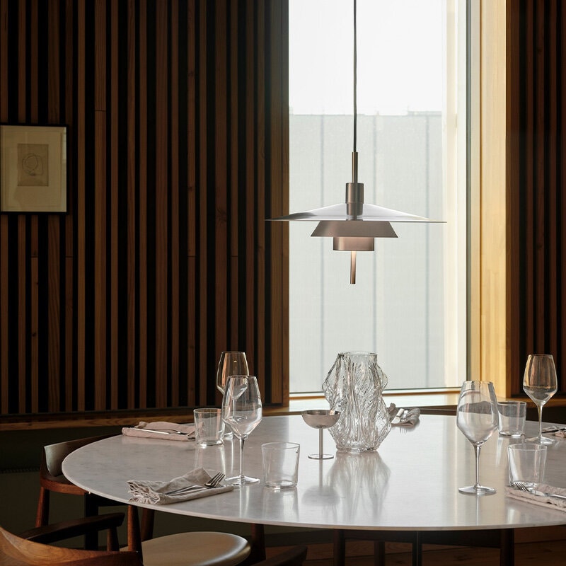 Resultatet är en minimalistisk design med hög funktionalitet – perfekt för matplatser eller rum där ett lugnt och fokuserat ljus önskas. Den avtagbara nedre delen gör det dessutom möjligt att anpassa lampans uttryck efter önskat utseende.