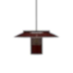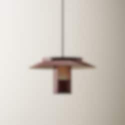 Design: Anne Dorthe Vester, 2025. Lille 24 är en kompakt och diskret, men samtidigt uttrycksfull pendel där ljus och form samverkar. Ljuset riktas med precision, medan ett mjukt sken filtreras genom de lagerbyggda ytorna och de finstansade, laserskurna linjerna. När lampan är tänd fördjupas den metalliska ytan och framhäver dess skulpturala karaktär.