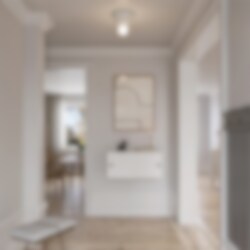 Loop 24 är en taklampa inspirerad av arkitektoniska rosetter som traditionellt pryder tak och ger en elegant inramning. Med en större frostad ljuskälla sprider den ett mjukt allmänljus eller ett diffust, stämningsfullt sken när ljuset dämpas. Lampan är särskilt lämplig i rum där en hängande taklampa inte får plats, och tack vare krokupphängningen är den dessutom enkel att installera.