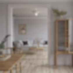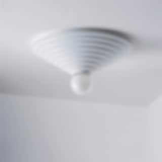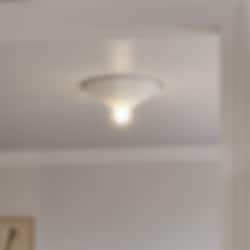 Loop 45 är en taklampa inspirerad av arkitektoniska rosetter som traditionellt pryder tak och ger en elegant inramning. Med en större frostad ljuskälla sprider den ett mjukt allmänljus eller ett diffust, stämningsfullt sken när ljuset dämpas. Lampan är särskilt lämplig i rum där en hängande taklampa inte får plats, och tack vare krokupphängningen är den dessutom enkel att installera.