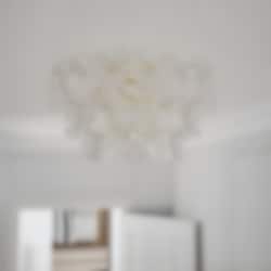 Skapa en lyxig atmosfär med Plafond Lorraine, en dekorativ lampa som ger rummet en känsla av sofistikerad elegans. Med sin stomme i blank mässing och de vackra akrylplattorna, sprider den ett mjukt och stämningsfullt ljus som reflekteras vackert mot den glänsande mässingsytan.