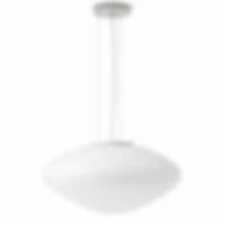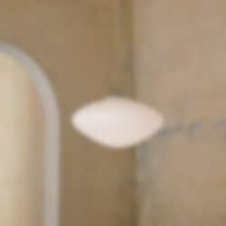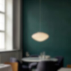 Mist-pendeln är tillverkad i munblåst opalglas med vitlackerade aluminiumdetaljer och en elegant textilsladd. Den finns i två storlekar och kan hängas som solitär eller kombineras i grupp för att skapa ett större ljusarrangemang.