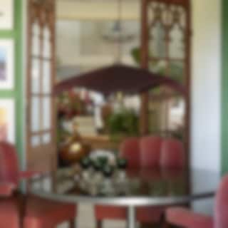 Monstera kännetecknas av sin generösa, vågliknande form som ger ett mjukt och levande uttryck i rummet. Skärmen är klädd i tyget Nivi – ett semitransparent material med en lätt torr struktur som ger textilens yta karaktär och djup. Tyget är elegant draperat runt den inre trådställningen, vilket skapar en skulptural siluett med tydlig men mjuk närvaro. När lampan tänds framträder en subtil lyster i tyget som förstärker formens böljande rörelse och ger ett varmt, inbjudande ljus. Monstera svävar vackert över ett matbord, soffbord eller i ett sovrum och blir ett dekorativt blickfång samtidigt som den bidrar med stämningsfull belysning. För bästa uttryck rekommenderas en större globformad ljuskälla i klar design med varm ton, vilket framhäver både textur och ljusets mjuka spridning.