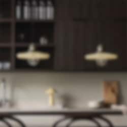 - Noah: En omtyckt och stilren plafond som vi säljer mycket av. Nu har serien utökats med en taklampa klädd i strukturerat bouclétyg som ger ett levande ljus.