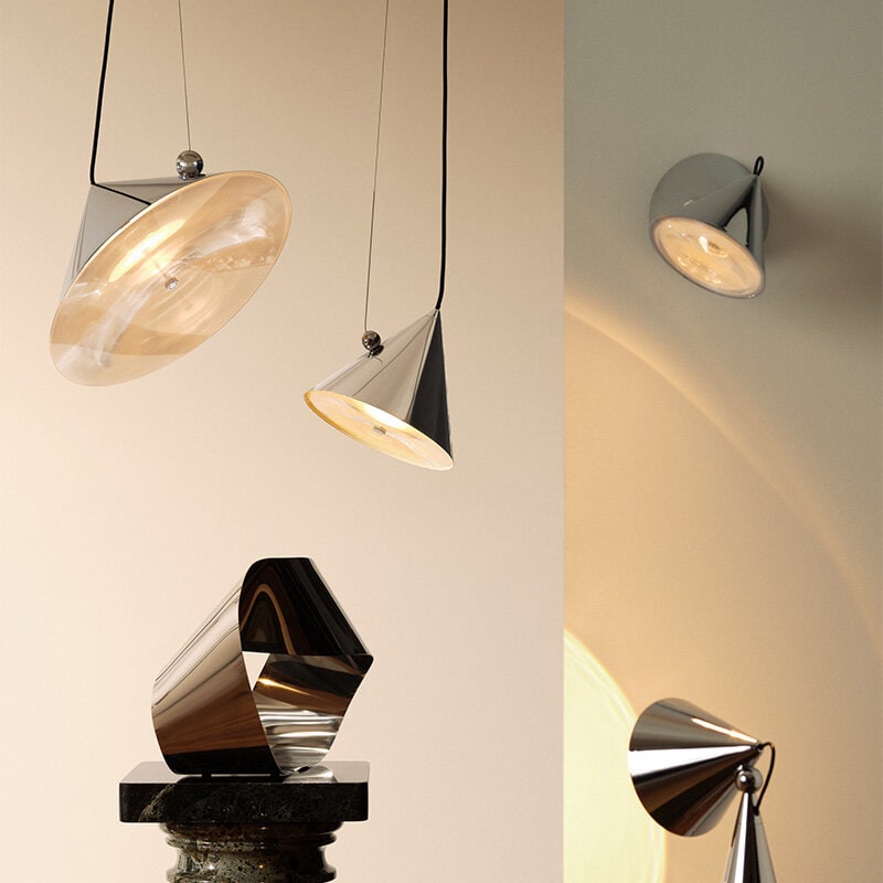 - Mirror Ball: Inspirerad av 1960-talets rymdutforskning och discokultur, är Mirror Ball en av varumärkets mest ikoniska modeller. Den speglande sfären i krom eller guld reflekterar omgivningen och fungerar lika mycket som ett konstobjekt som en ljuskälla.